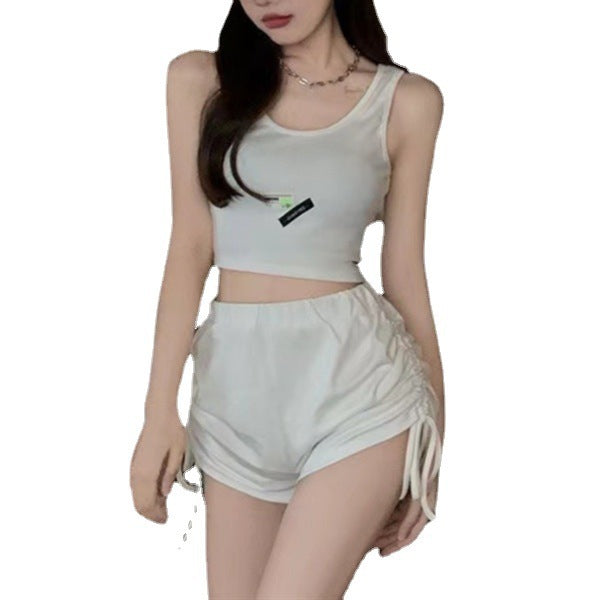 Product information: Color: apricot, light gray, dark gray Elasticity: high elasticity Pants length: Shorts Waist type: high waist Size: free size Style type: Japanese and Korean casual Popular elements: washed Style: wide leg pants Thickness: thin Fabric name: cotton blend Main fabric composition: Polyester Fiber (polyester) Pants type: loose type Style: casual style Process: non-ironing