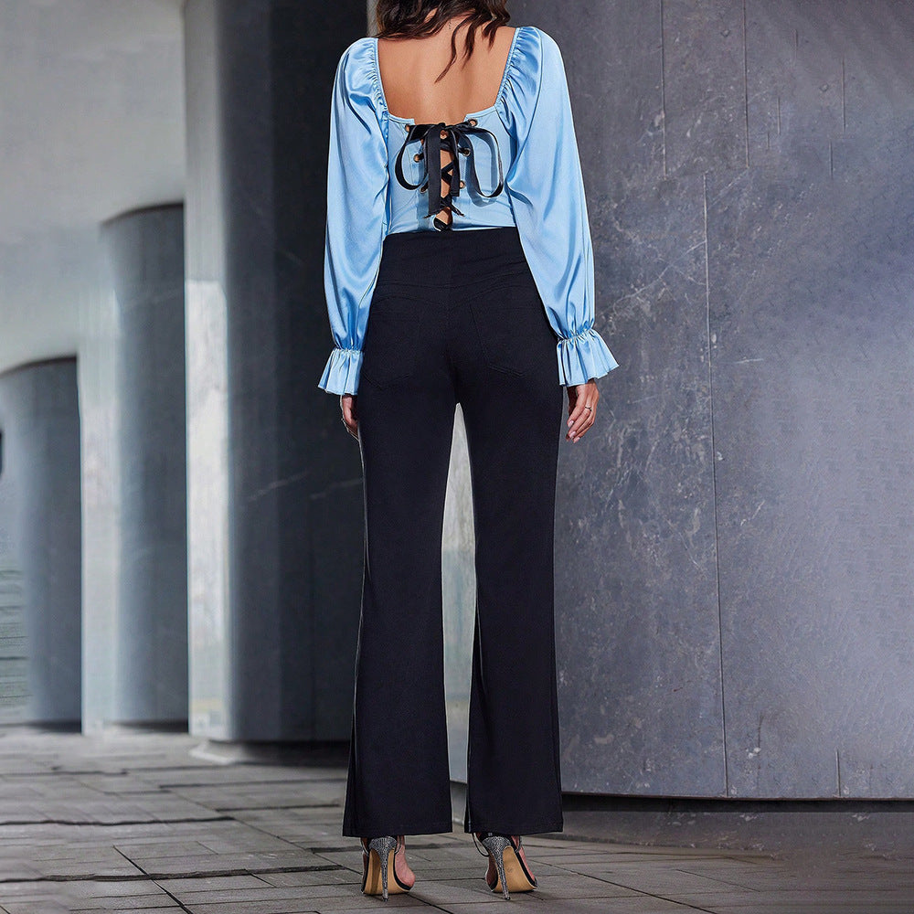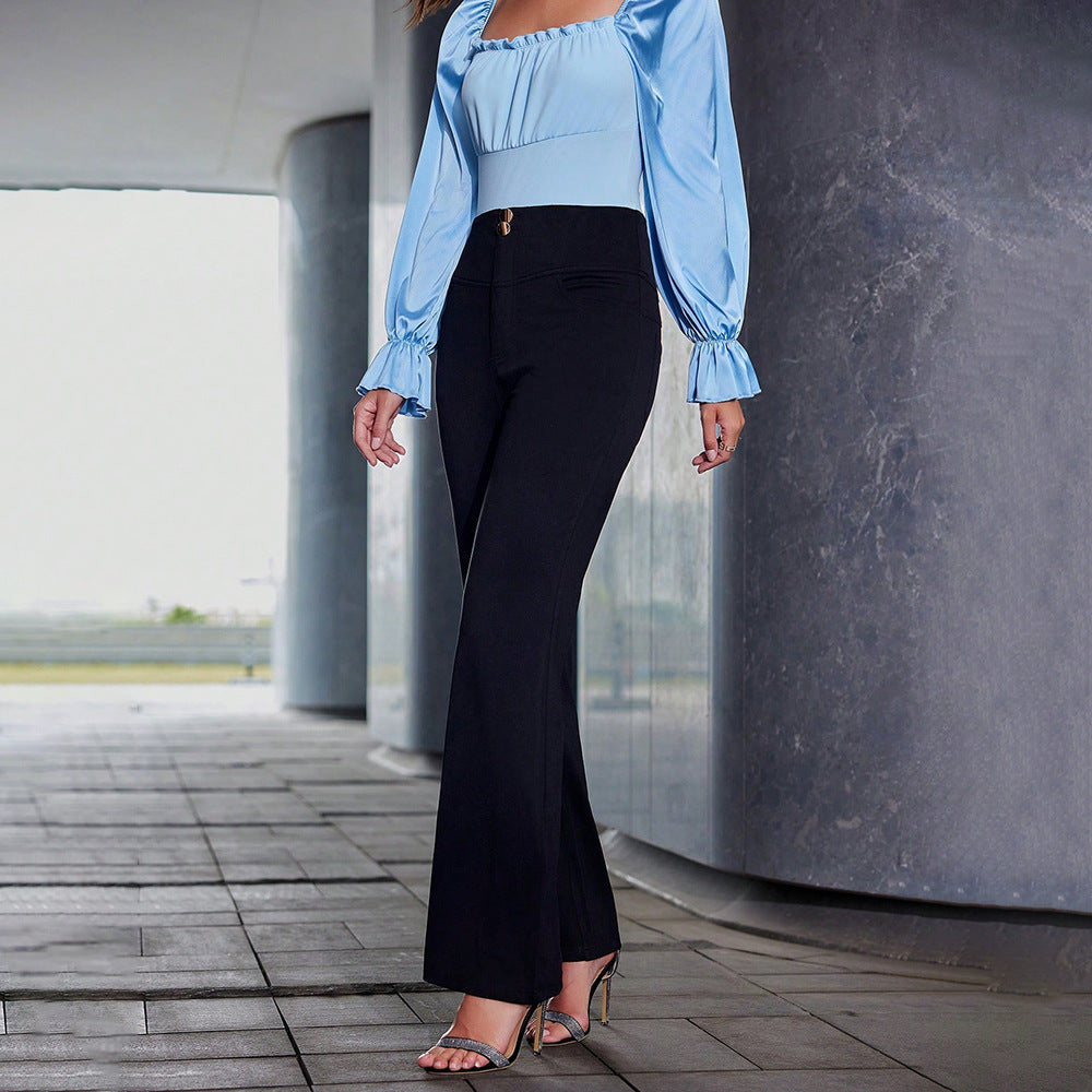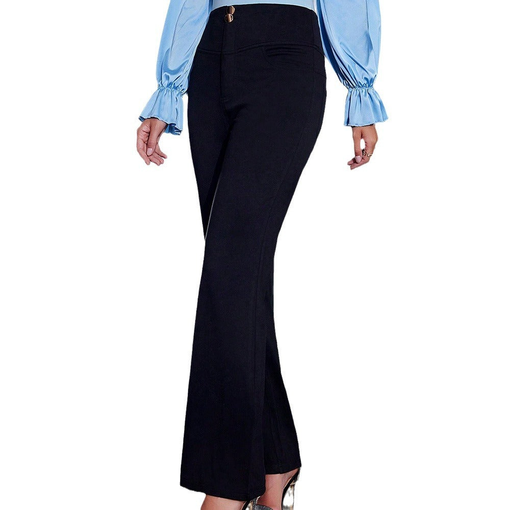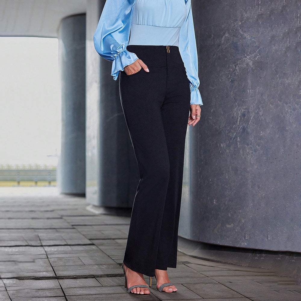 Product information: Color: DMX59995 Black Elasticity: Micro elasticity Pants length: trousers Waist Type: Mid waist Size: XS,S,M,L,XL,XXL Thickness: thin Fabric name: Polyester Fiber Applicable Gender: Female Pants type: Straight type (Unit: cm)