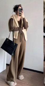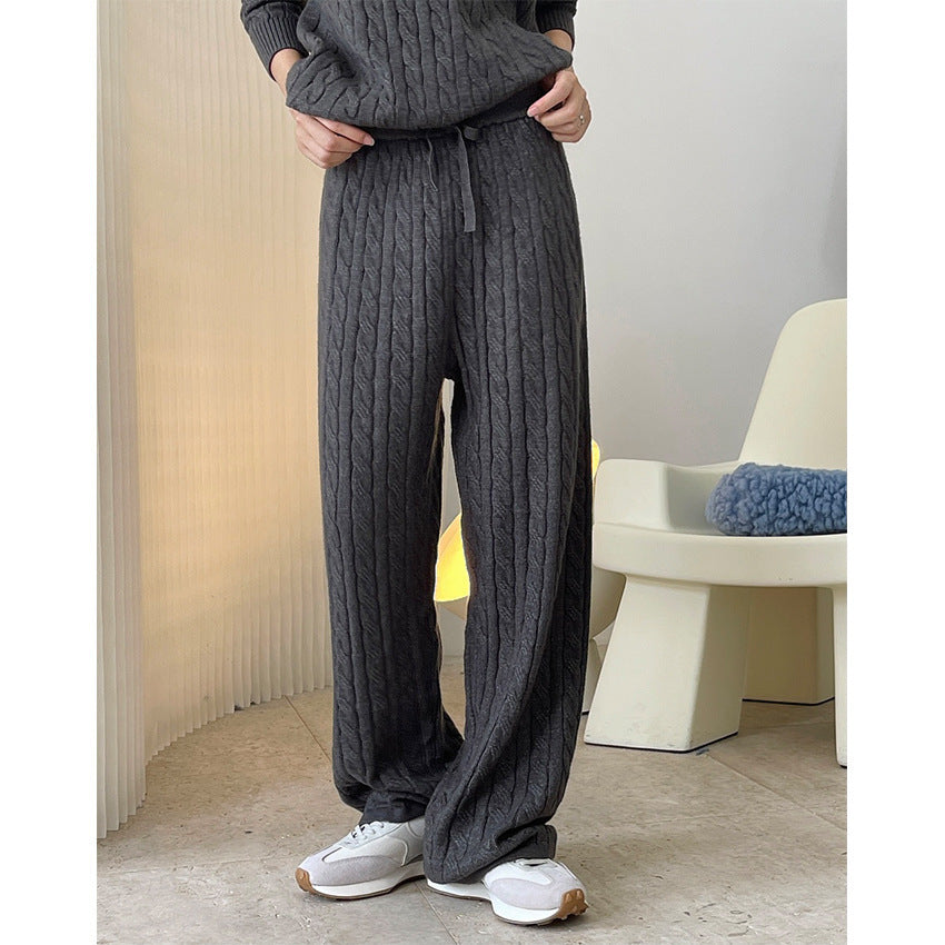 Product information: Thickness: thick Pattern: Twisted Fabric name: Core-spun yarn Color: Milky White, gray, black, khaki, lotus root starch Elastic: medium elastic Main fabric composition: Polyester (polyester fiber) Pants length: trousers Size: free size Function: hip lifting Pants type: loose type Popular elements: lace-up