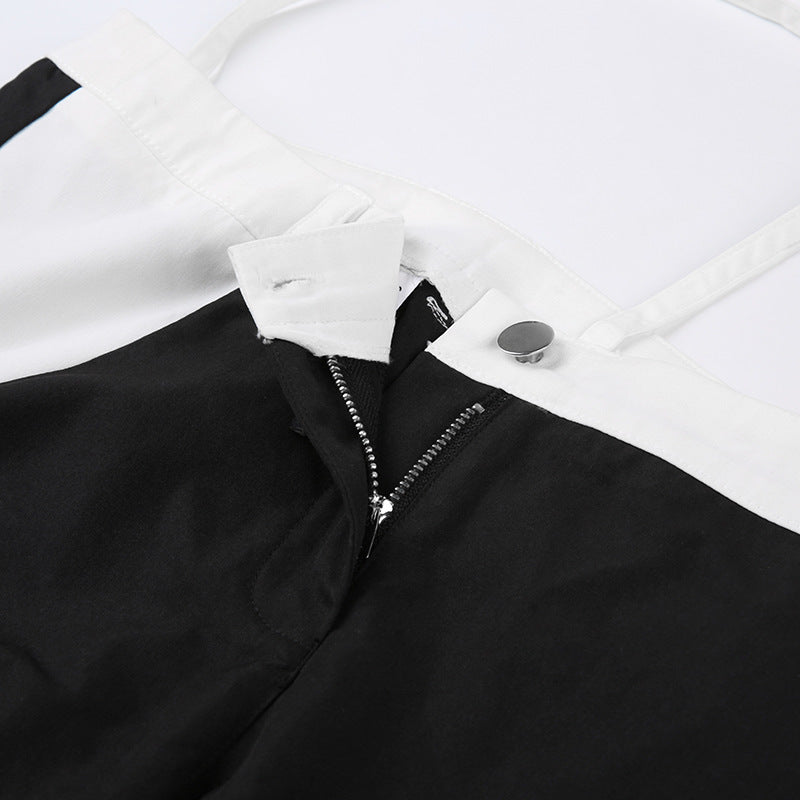 Product information: Color: Black and White Elasticity: inelastic Pants length: trousers Waist Type: Mid waist Size: S,M,L Style type: street fashion Popular elements: Hollow contrast color Style: bootcut trousers Thickness: medium Fabric name: Woven Main fabric composition: Polyester (polyester fiber) Applicable Gender: Female Pants type: Light Miniature Style: Trendy Craft: collage/stitching