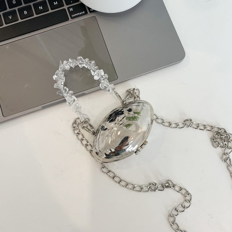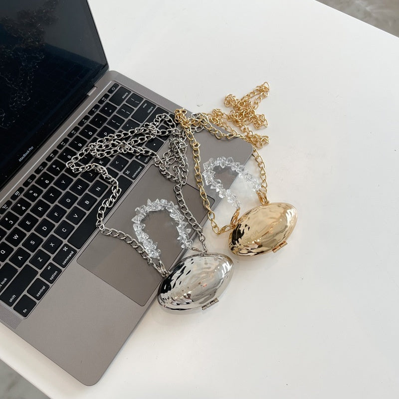 Product information: Lining texture: no lining Color: gold, silver Outer bag type: Three-dimensional pocket Hardness: hard Material: Metal Suitcase shape: Oval Number of shoulder straps: Single Yes/No lining cloth: None
