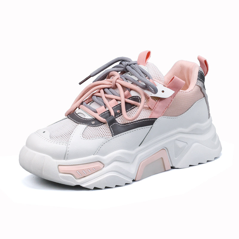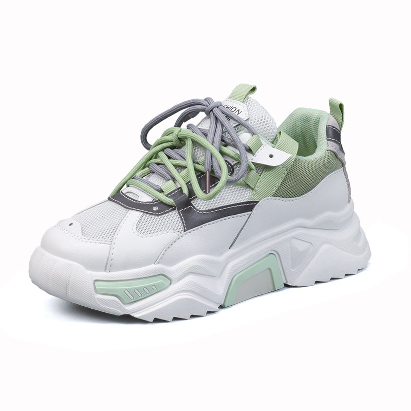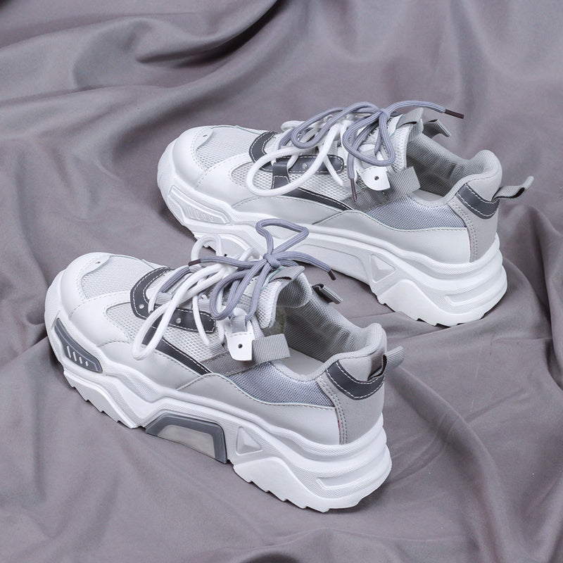 Upper material: PU + mesh Inside material: comfortable inside Sole Material: Rubber Color choice: pink gray green Code: 35-40 Style: fashion trend Heel height: 5.5CM Matching: trendy wild