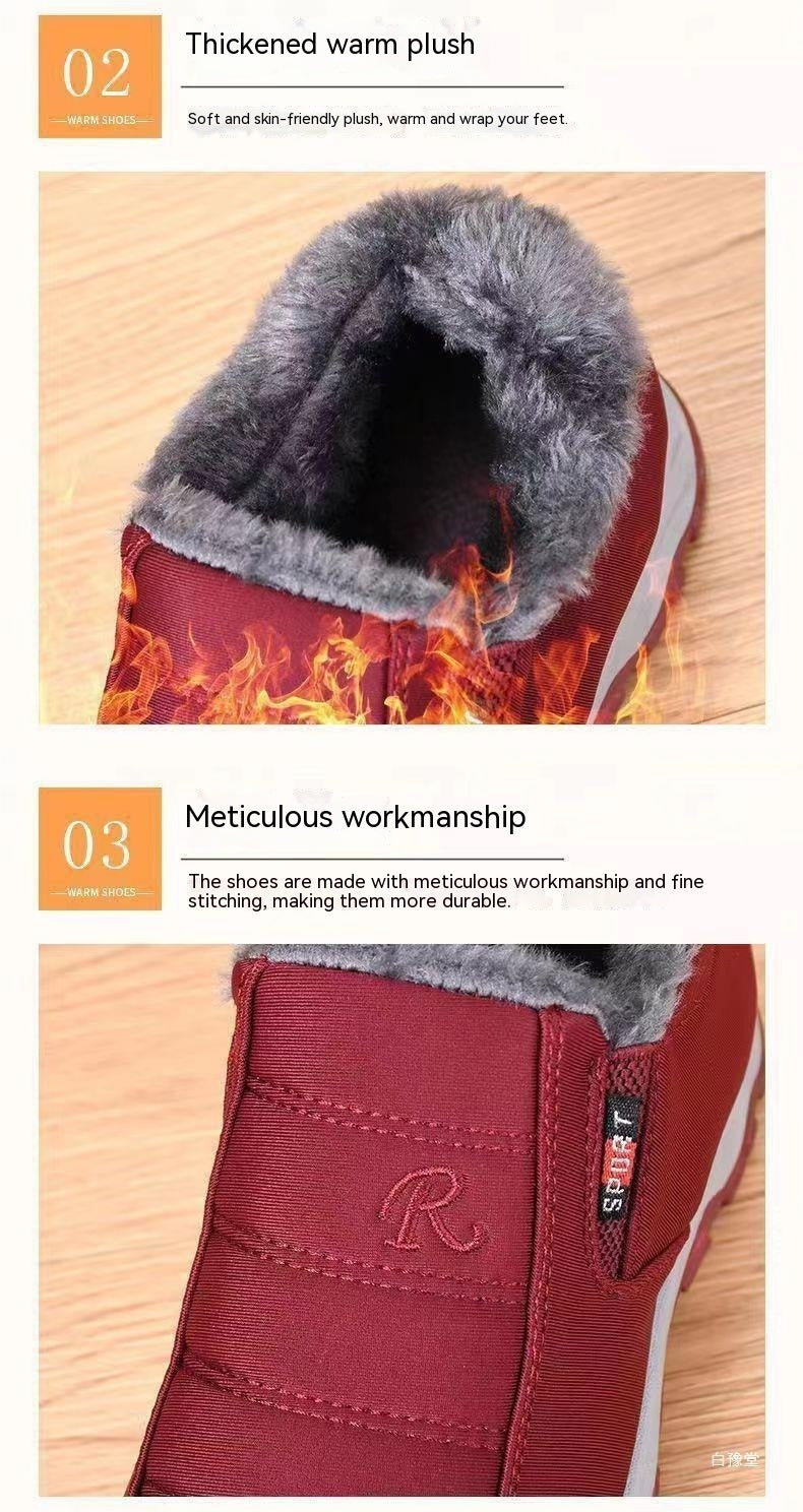 Product information: Pattern: solid color Lining material: artificial plush Color: men's walking cotton shoes [Black], women's walking cotton shoes [red] Upper height: low top Heel height: flat heel Heel shape: Platform Size: 36, 37, 38, 39, 40, 41, 42, 43, 44 Sole material: rubber Popular elements: sewing thread Toe bracket shape: Tip