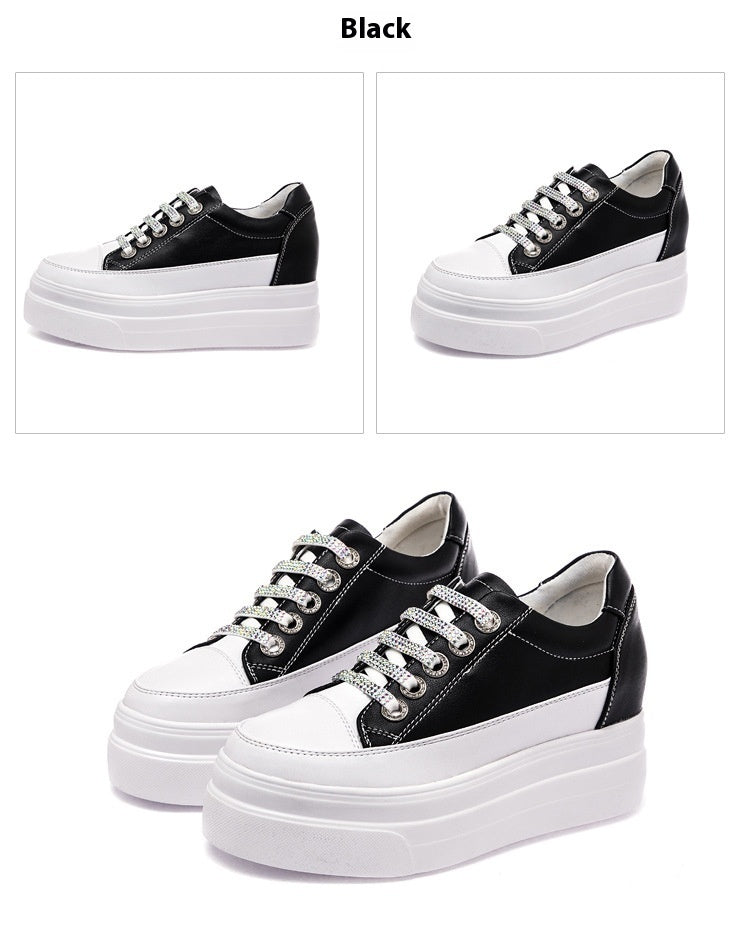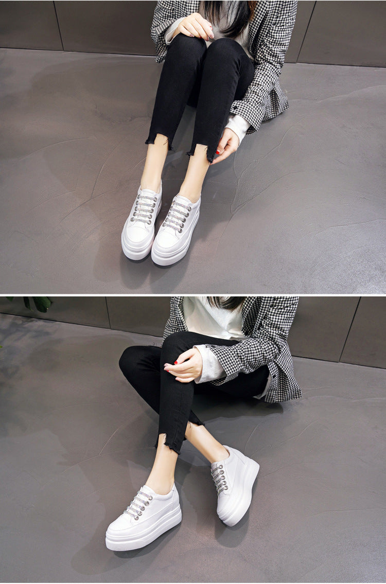 Genuine Leather Platform Versatile Casual Breathable White Muffin Height Increasing Insole Women's Board Shoes
