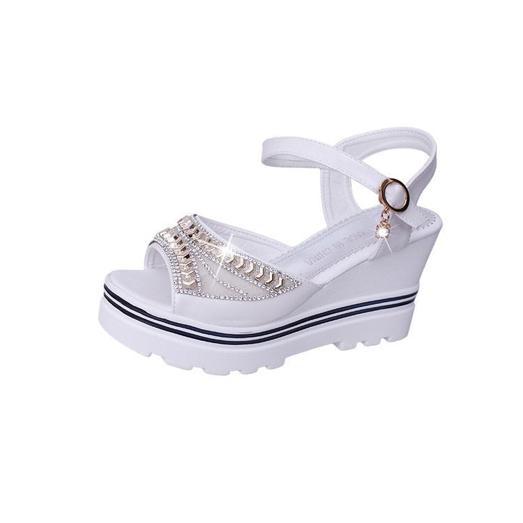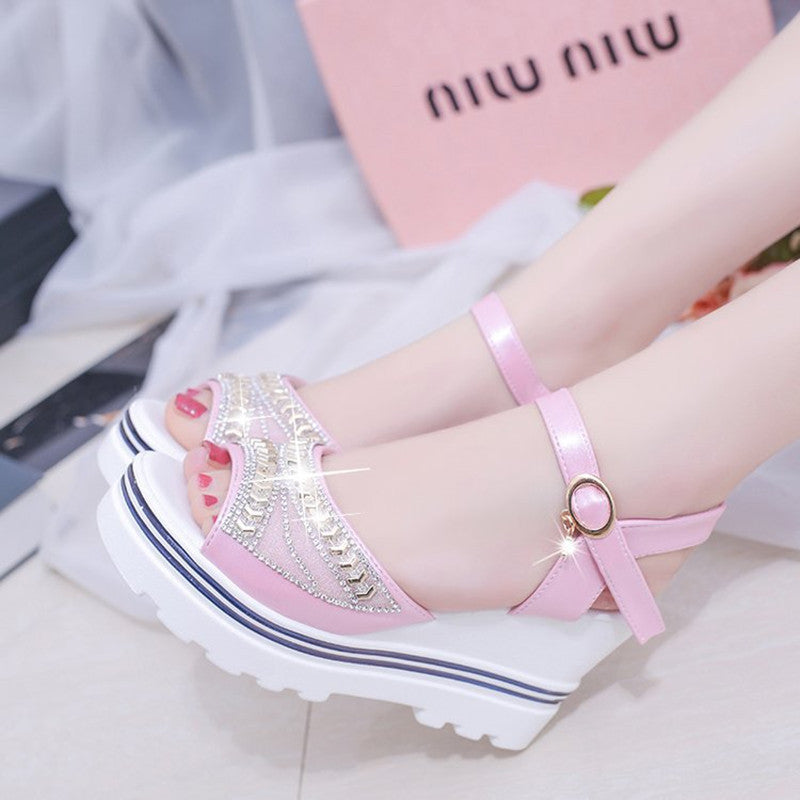 Popular elements: rhinestones, wedge heels, waterproof platform