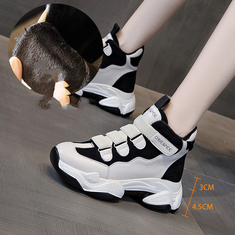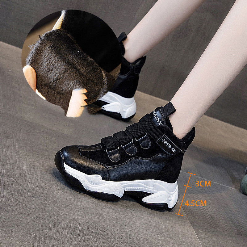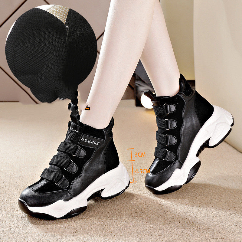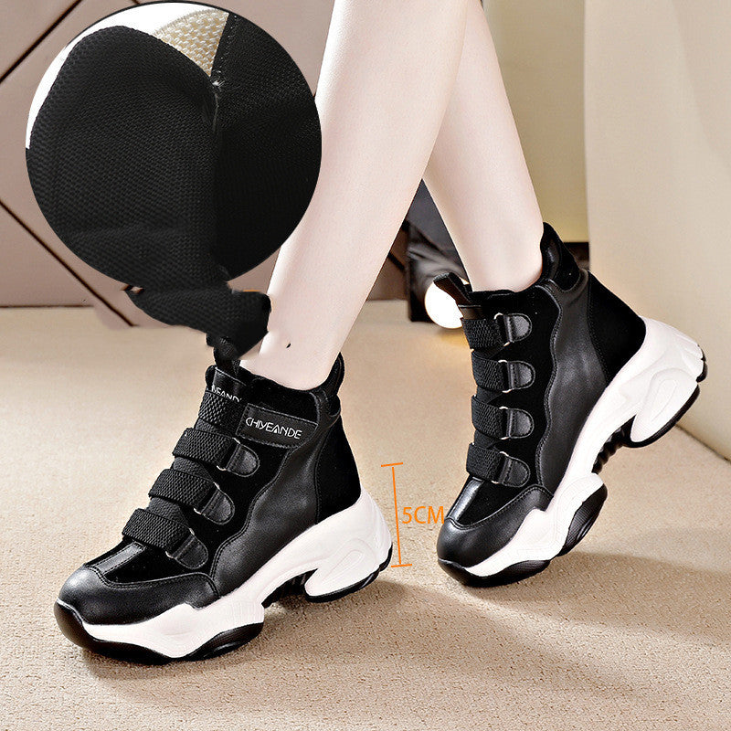 Cortical features: bovine split leather Applicable gender: female Upper material: leather style: Casual Sole material: polyurethane Inside material: mesh Processing method: frosted Upper height: high