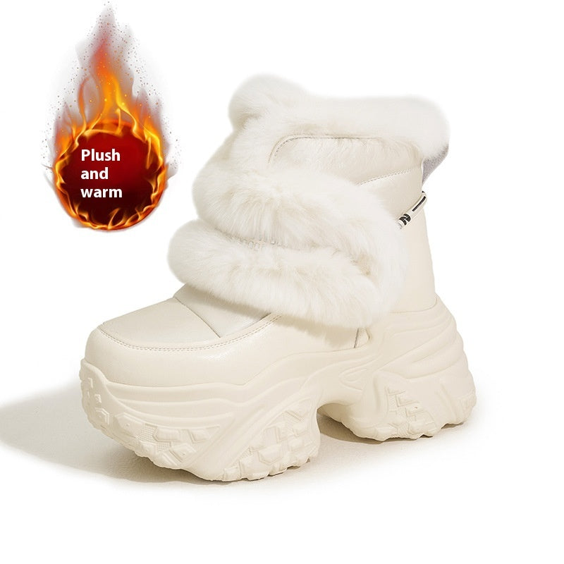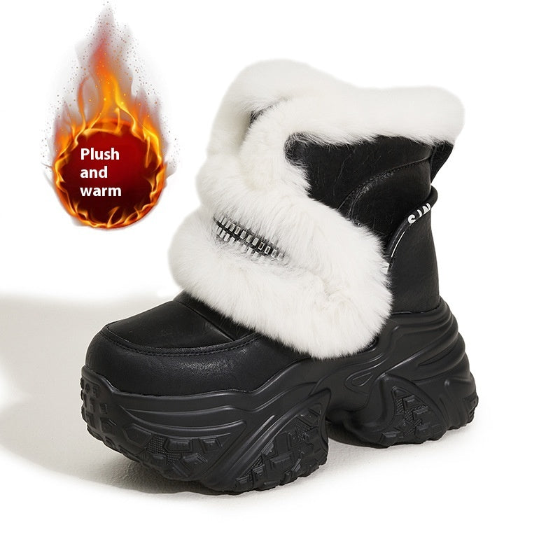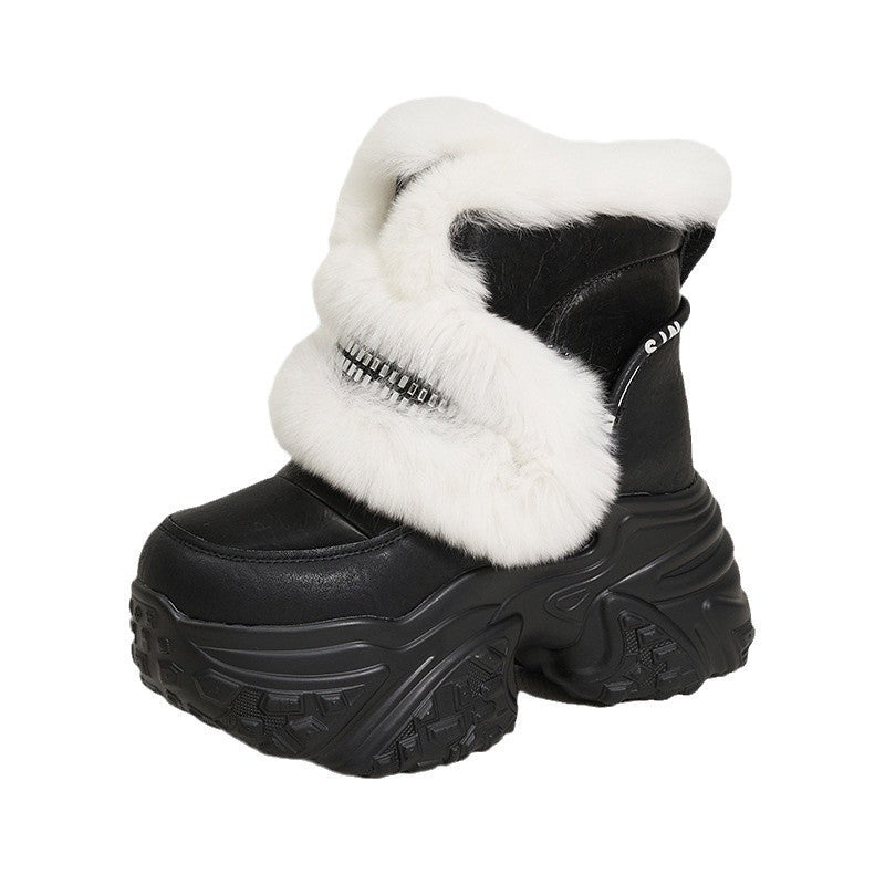 Product information: Pattern: solid color Inner material: artificial long wool Color: Black, Pearl White Upper height: tall crown Processing Method: sticky leather Heel height: 10cm Length of socks: Middle calf Heel shape: English muffin heel Size: 34, 35, 36, 37, 38, 39 Sole craft: viscose shoes Cutting depth: deep mouth Sole material: Polyurethane Popular elements: Flanging Style: platform shoes Applicable scenarios: Daily Toe holder shape: round head Shoe Upper material: Microfiber Wearing method: Velcro Applicable Gender: Female