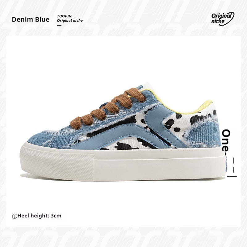 Women's Retro Cow Casual All-match White Shoes