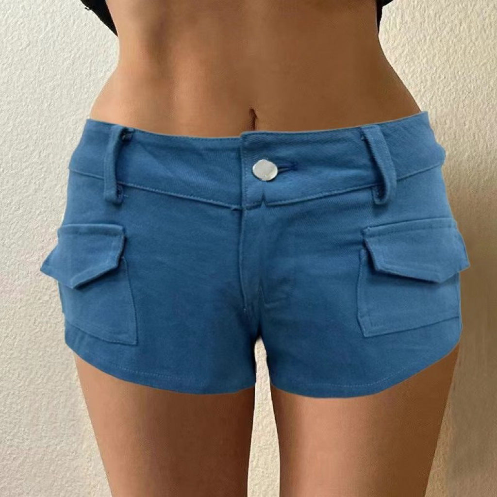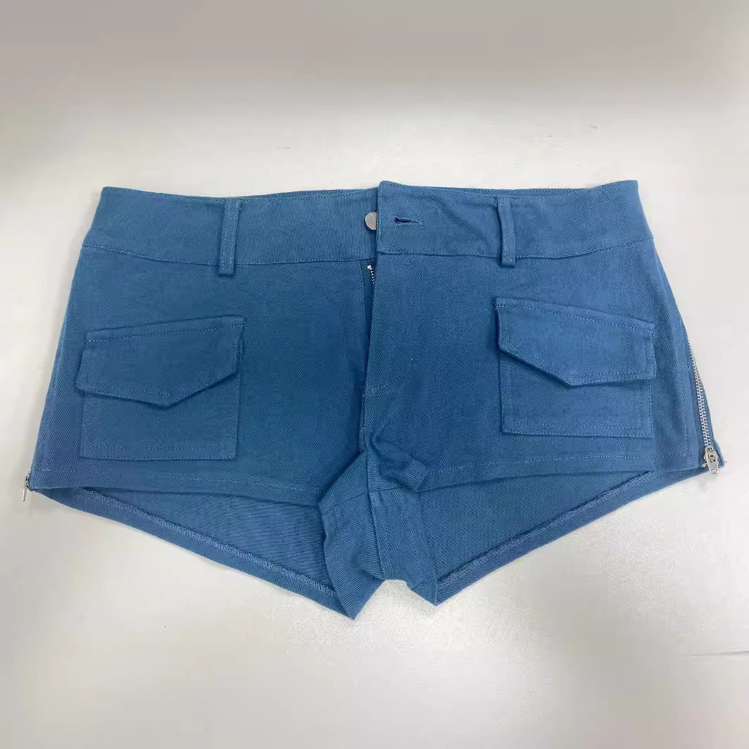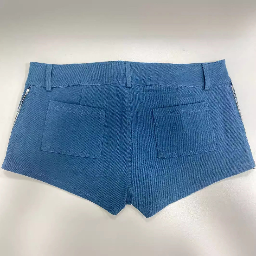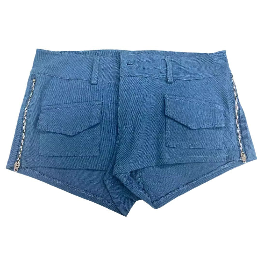 Product information: Thickness: medium Fabric name: Polyester Color: gray blue Elasticity: Micro elasticity Main fabric composition: Polyester (polyester fiber) Pants length: Hot pants Waist Type: Mid waist Size: XS,S,M,L,XL Style type: street fashion Popular elements: zipper Style: Street style Style: Basic Craft: collage/stitching