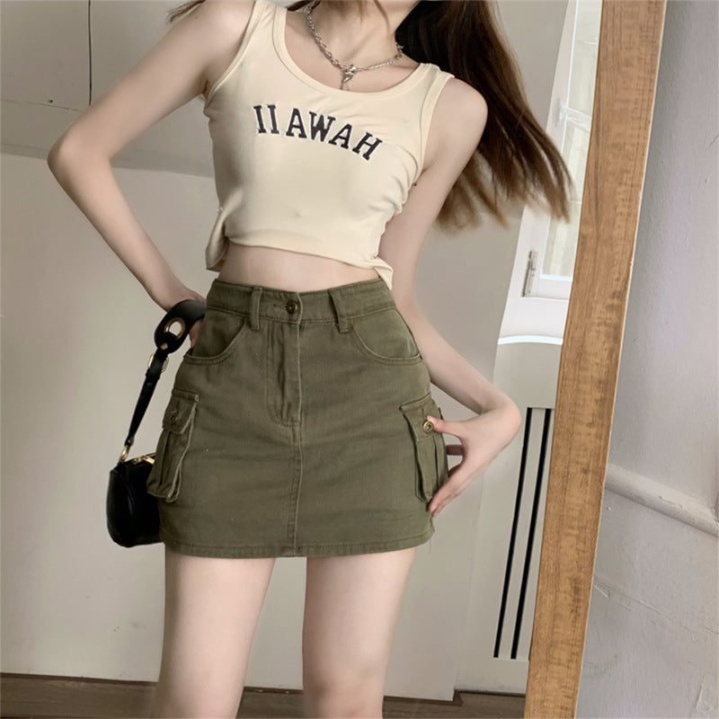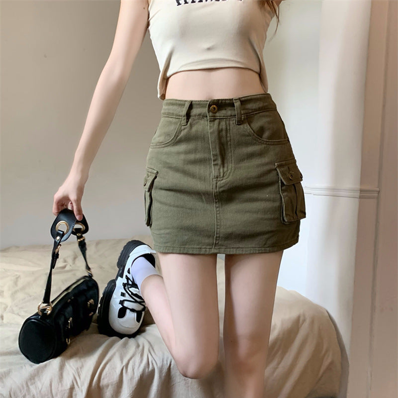 Product Information: Main fabric component: cotton Type: A-line skirt Skirt length: Short skirt Color: Army green, black Size information: Size: S,M,L,XL