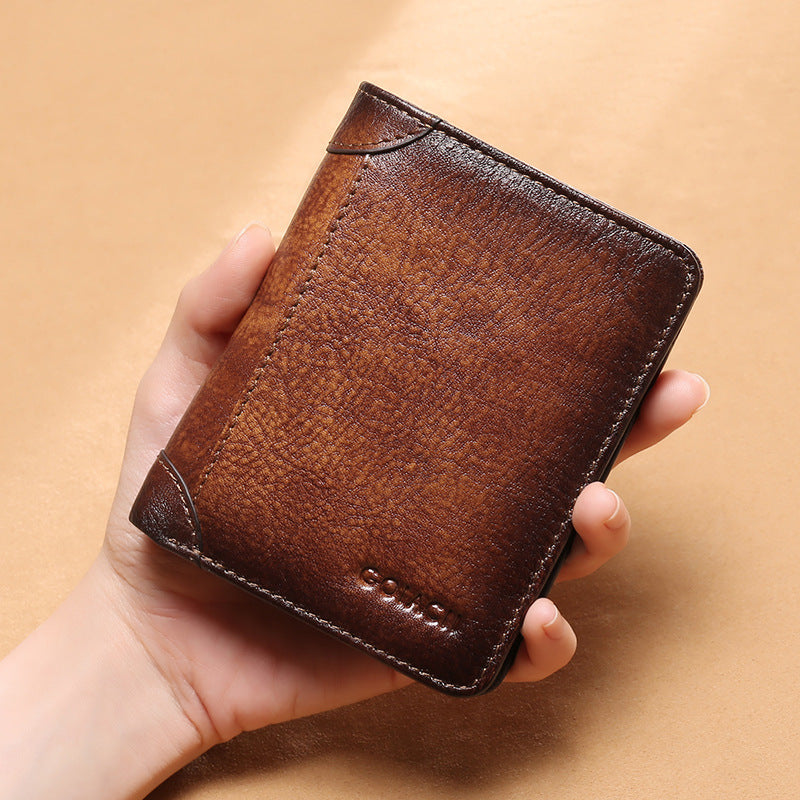 ◆Material: First layer cowhide >Color: brown, brown, dark blue ◆Inner: first layer cowhide + polyester ) Style: Retro casual ◆Hand feeling: moderate ◆Size: Height 12cm x Width 10cm x Thickness 2cm
