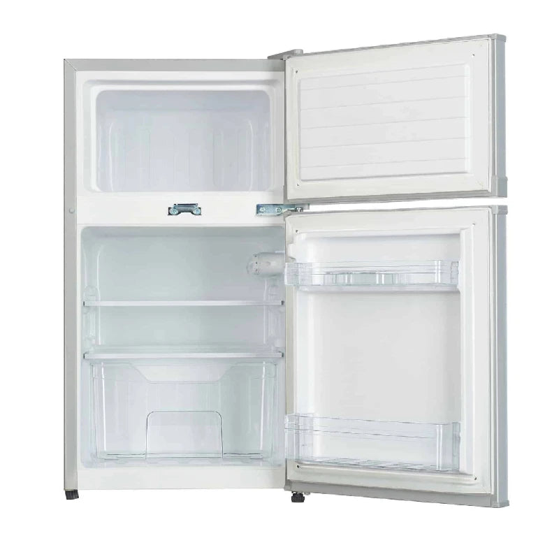 Keep your kitchen fresh and organized with the ADH 130L Double Door Refrigerator in sleek silver. Engineered with trusted German technology, this efficient cooling unit maintains optimal temperatures between -10°C and +10°C, perfect for preserving food and beverages. With a generous 130-liter capacity and impressive 2.0kg/24-hour refrigeration ability, it handles your daily storage needs effortlessly. The eco-friendly R134a refrigerant and cyclopentane insulation ensure reliable performance while minimizing environmental impact. Running on just 90 watts, this energy-efficient appliance keeps operating costs low without compromising cooling power. Ideal for homes and small businesses seeking dependable refrigeration with modern engineering.
