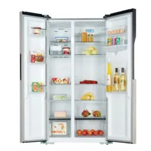 The ADH 558L French-style refrigerator combines sophisticated design with practical functionality. Featuring a spacious 558-liter net capacity and 211-liter freezer compartment, this silver stainless steel unit keeps your food fresh and organized. The convenient water and ice dispenser with twist-and-serve technology puts refreshment at your fingertips. Built with German engineering and advanced R134a refrigeration, it maintains optimal temperatures from -10 to +10°C. The easy-care stainless steel door resists fingerprints while the efficient 0.12kW power consumption keeps energy costs low. Perfect for modern kitchens, this refrigerator delivers premium cooling performance and elegant style in one impressive appliance.