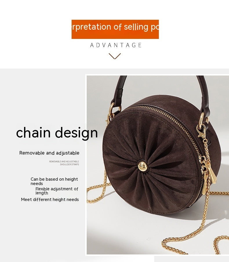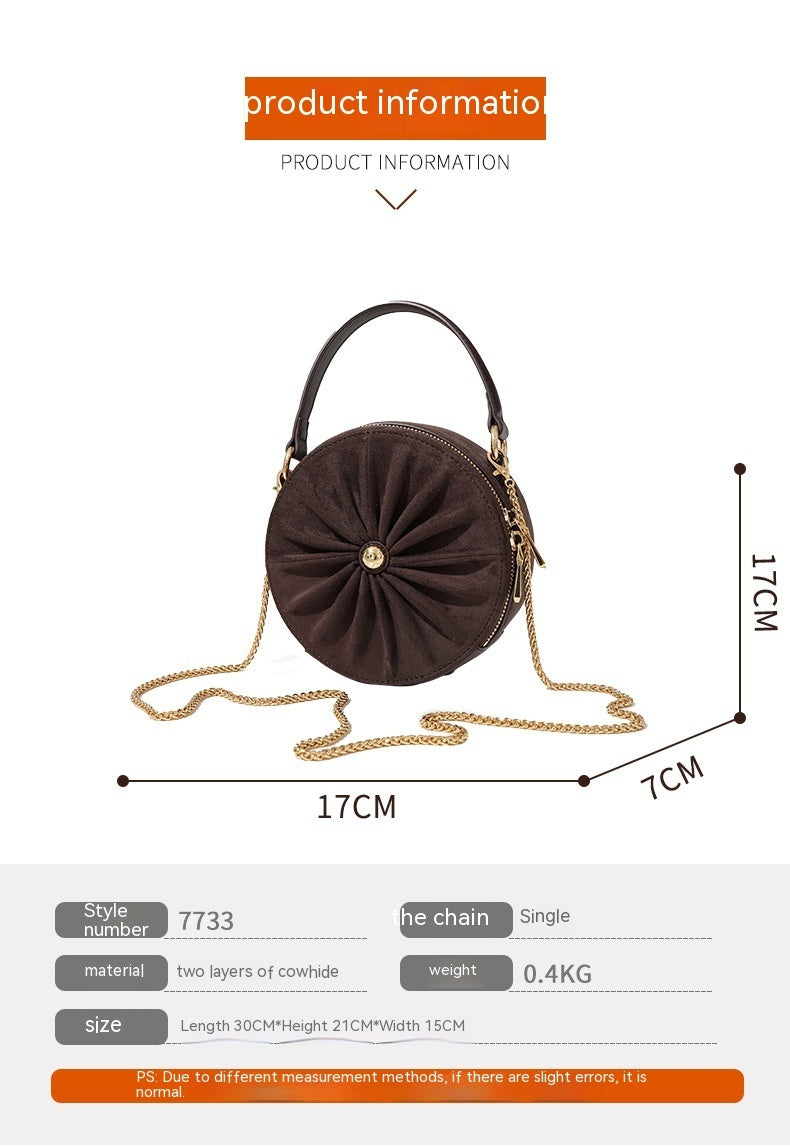 Product information: Lining texture: Cowhide Applicable scenario: Daily configuration Color: camel, black, chocolate Outer bag type: Sandwich pocket Leather features: two-layer cowhide Hardness: medium and soft Material: genuine leather Suitcase shape: round Bag internal structure: mobile phone bag, file bag Popular elements: chain Style: Urban Simplicity Number of shoulder straps: Strapless