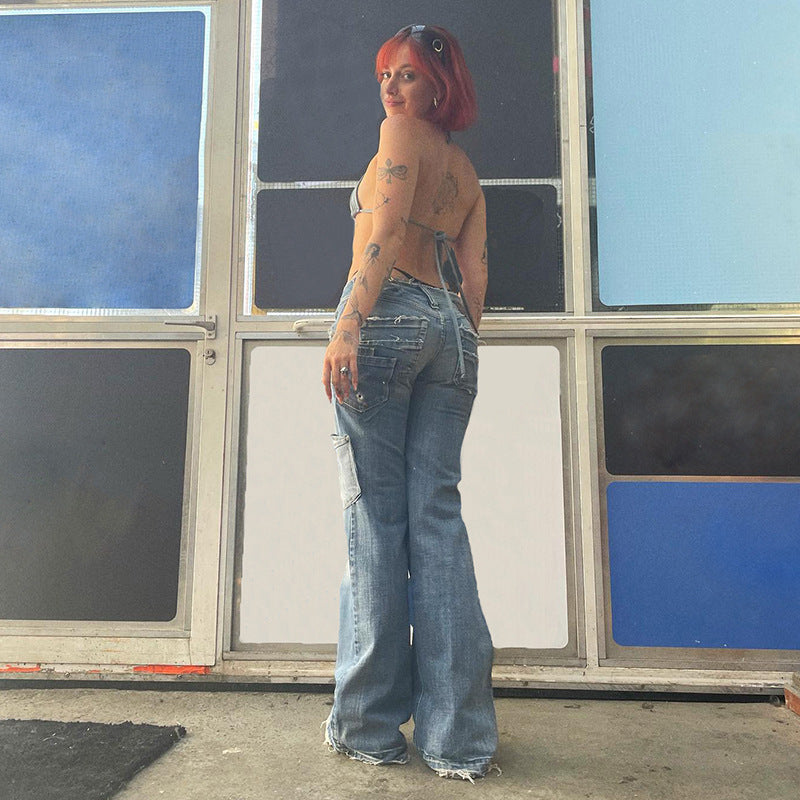 American Retro Star Print Asymmetric Jeans Women