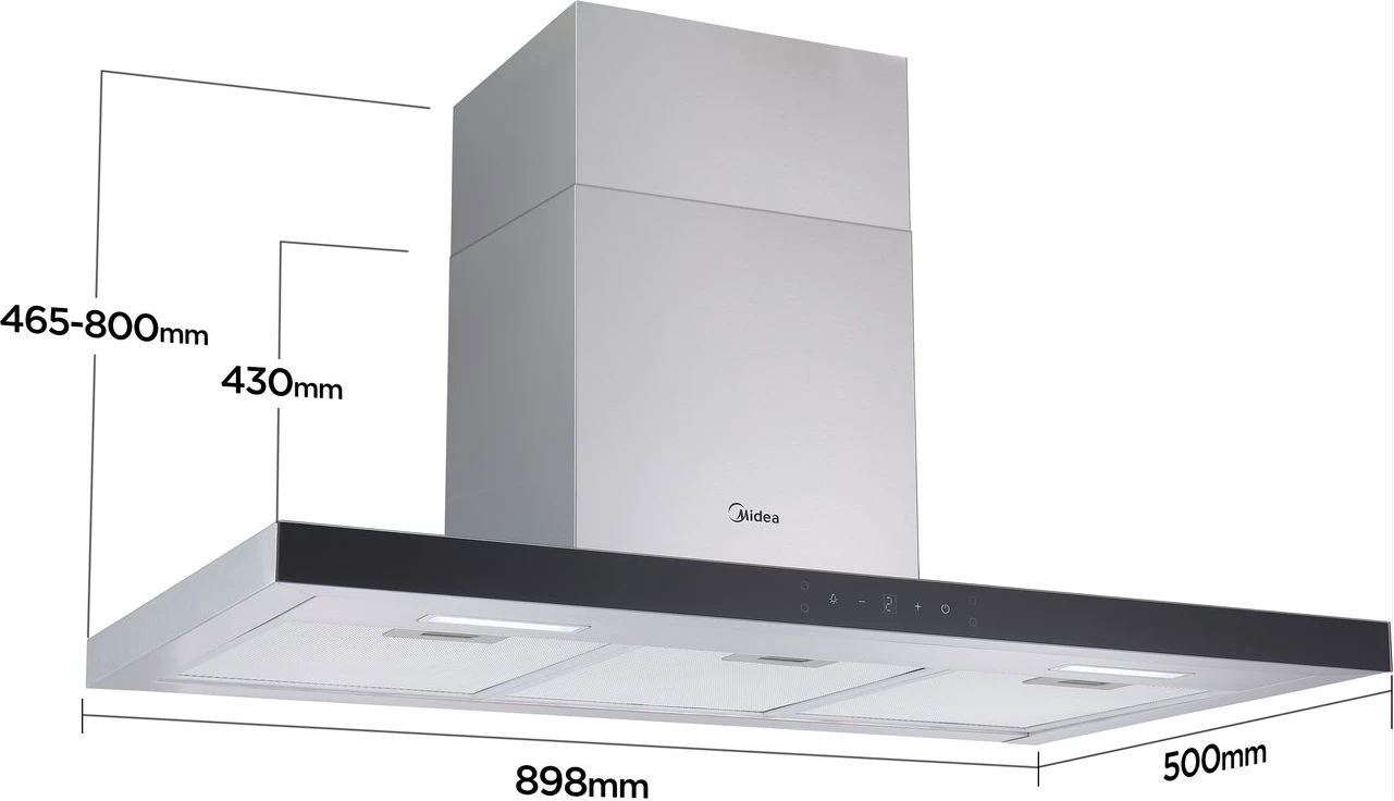 Midea 90cm Chimney Cooker Hood MH90M77ET27M B
