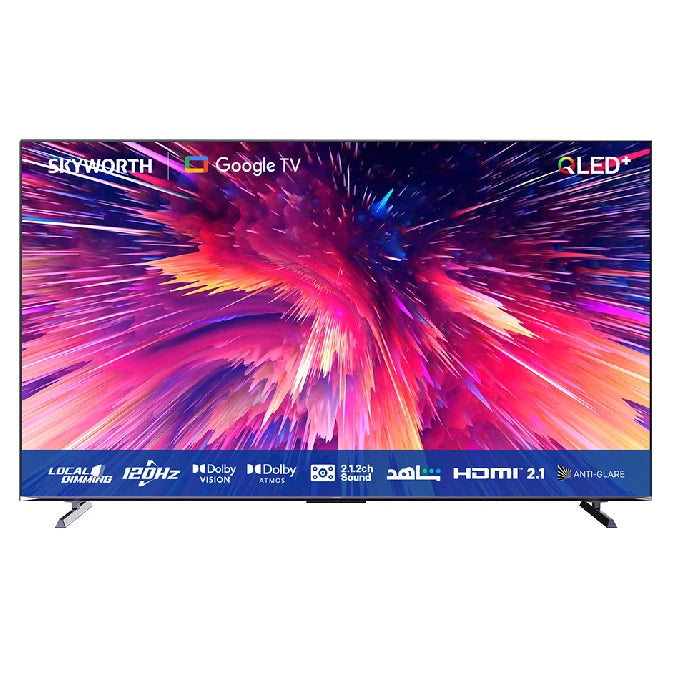 Experience cinema-quality entertainment on an unprecedented scale with this Skyworth 100-inch 4K Premium QLED TV. Featuring advanced Quantum Dot Pro technology and Mini LED backlighting with 112 zones of local dimming, every scene delivers stunning contrast and vibrant colors. Dolby Vision IQ and HDR10+ support ensure cinematic picture quality, while the 120Hz refresh rate with MEMC technology provides smooth motion for sports and gaming. Built-in Google TV offers instant access to your favorite streaming apps, and Google Assistant integration puts control at your fingertips. With comprehensive connectivity including 3 HDMI ports, dual USB, Bluetooth 5.1, and dual-band WiFi, this powerhouse TV adapts to your entire entertainment ecosystem. Backed by a reassuring 10-year warranty, this is the ultimate display for those who demand immersive, large-scale viewing.