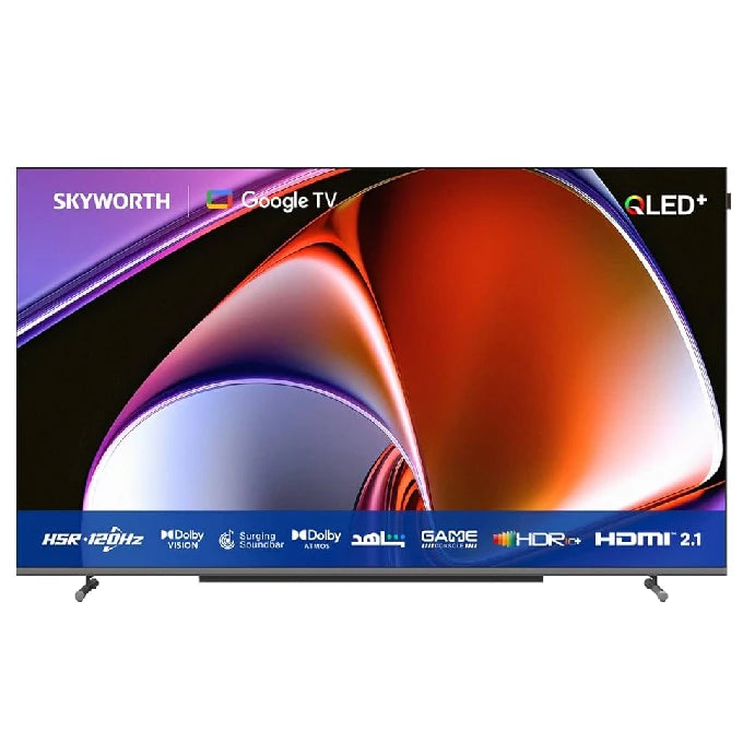 Experience cinema-quality entertainment on the expansive 65-inch Skyworth QLED display, delivering stunning 4K resolution with HDR10+ and Dolby Vision for vibrant, lifelike visuals. The 120Hz refresh rate ensures smooth motion during fast-paced scenes and gaming. Powered by Google TV with built-in Chromecast, voice control, and access to your favorite streaming apps, this smart TV puts entertainment at your fingertips. Immersive 20W Dolby Atmos audio completes the experience, while gaming-optimized features like Game Master and low input lag make it perfect for console players. Seamless connectivity via Wi-Fi, Bluetooth, and multiple HDMI ports keeps all your devices linked effortlessly.