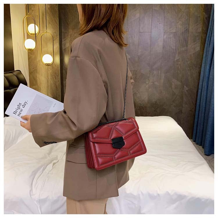 Style: women's shoulder bag Cortical features: other Luggage trend style: shoulder bag Lining texture: PU Bag shape; horizontal square Open the way: zipper Popular elements: rivet Bag internal structure: sandwich zipper bag Lifting part; chain handle Outer bag type; bag with lid Color; wine red, black, brown,coffee