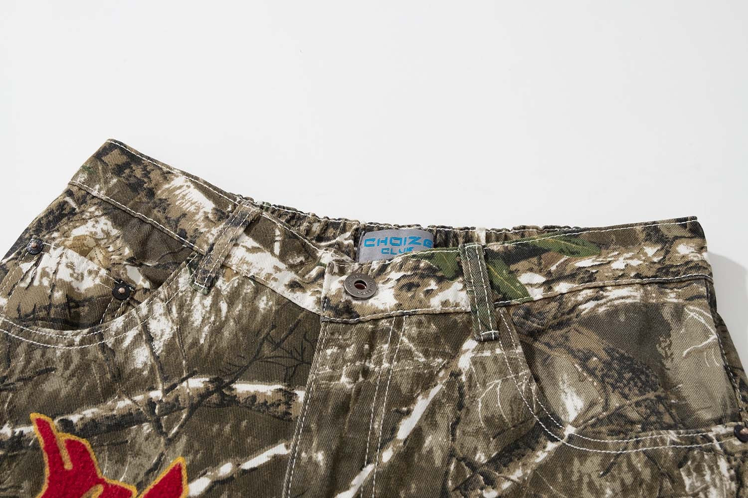 Product Details: Style: Basic Pants type: straight type Special process: embroidery, washing, old Pants placket: zipper placket Fabric name: denim Main fabric composition: cotton The content of main fabric components: 90 (%) Color: Camouflage Size information: Size: M,L,XL